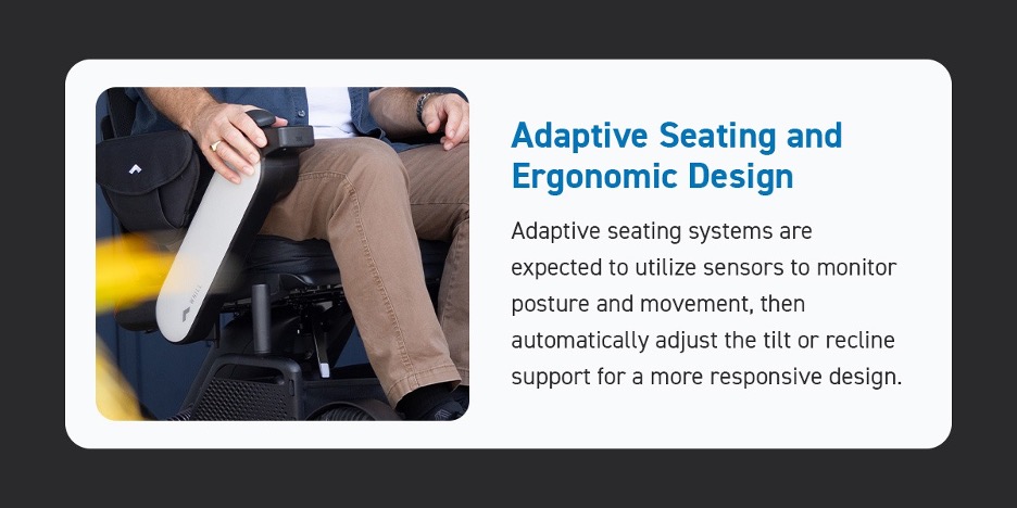 Adaptive seating systems are expected to utilize sensors to monitor posture and movement, then automatically adjust the tilt or recline support for a more responsive design. Ergonomic wheelchair design continues to advance through modular components and intelligent controls. Adjustable back rests, lumbar supports, and pressure-redistribution cushions allow seating to adapt throughout the day.