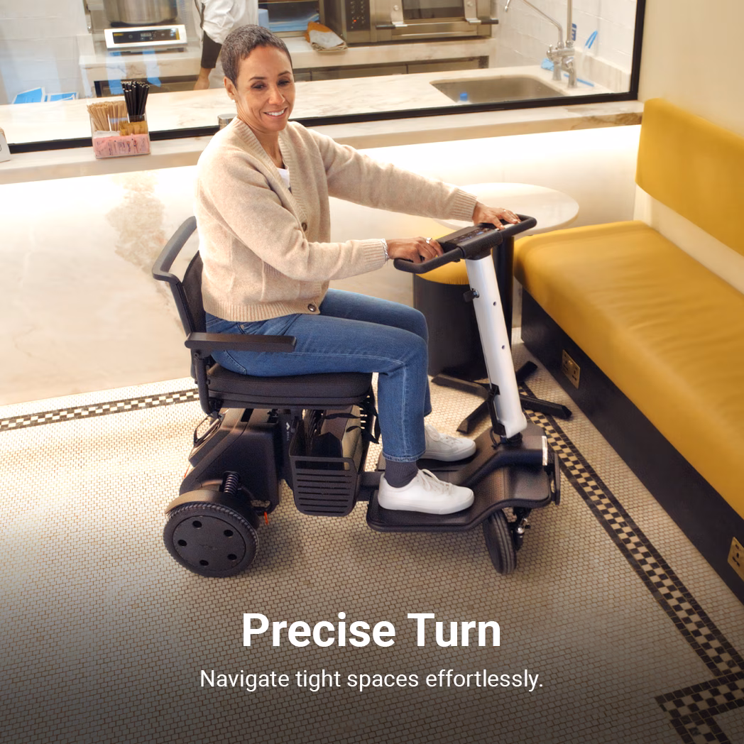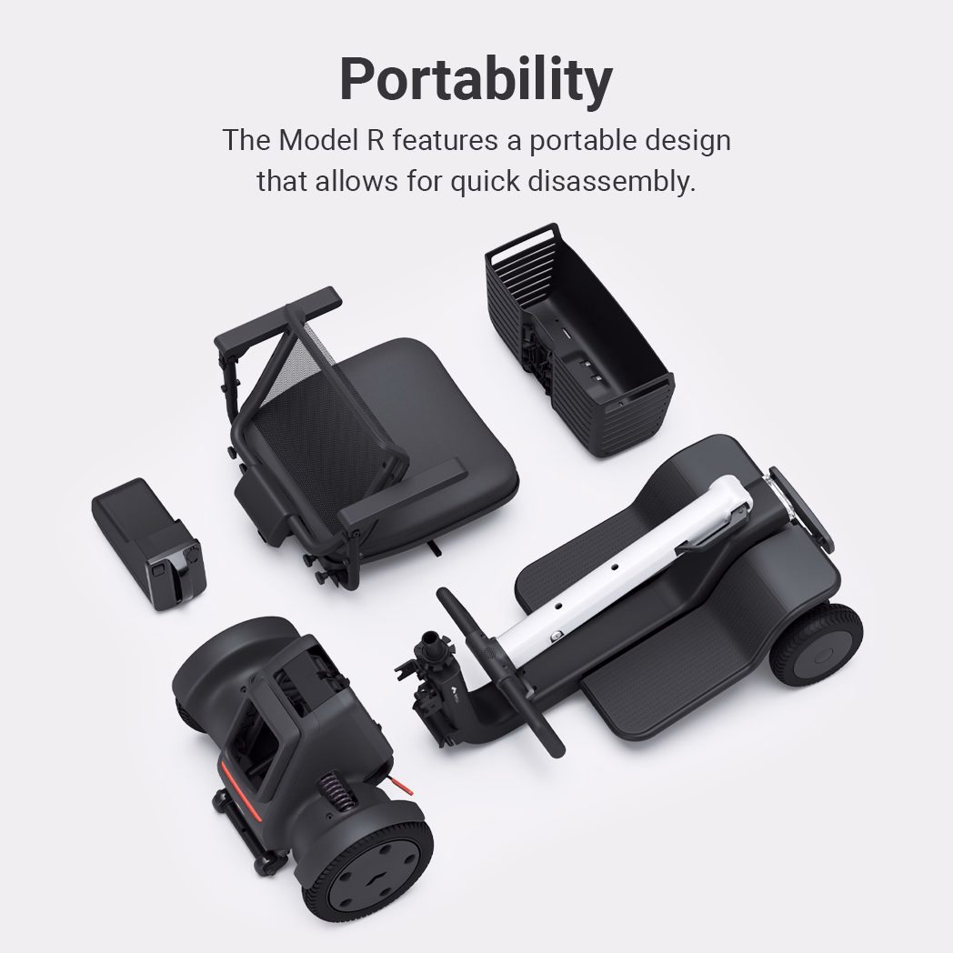 Unlike bulky traditional mobility scooters, the Model R 4-Wheel is lightweight, sleek, and easy to drive. It disassembles in less than 10 seconds and is the perfect companion for your everyday life, giving users the freedom and confidence to explore the world around them safely and comfortably.